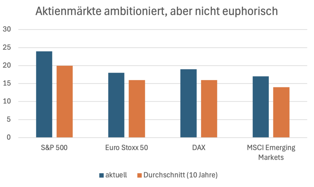 Auch der deutsche Aktienmarkt könnte seine Rekordjagd fortsetzen. Für den Dax 40 liegt das Konsensziel bei rund 26.000 Punkten. Hoffnung macht hierbei die Aussicht auf eine konjunkturelle Erholung, getragen von den staatlichen Investitionen und einer gelockerten Schuldenbremse.